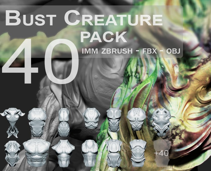 40 Creature Bust - Zbrush IMM with Topology / OBJ / FBX