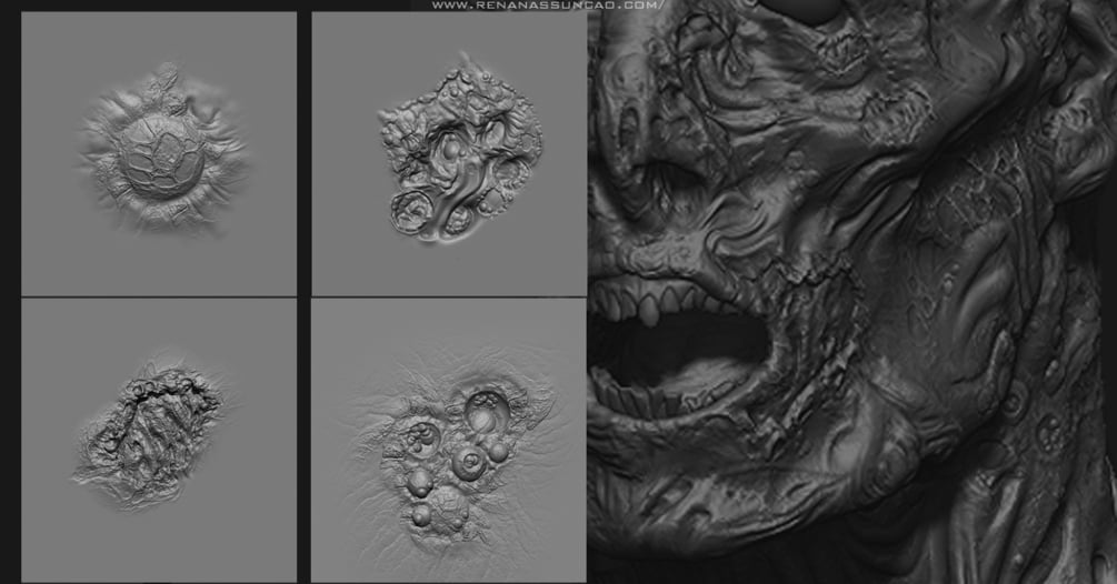 20 hand sculpted zombie/monster detail brushes, are 369 MB within one VDM.